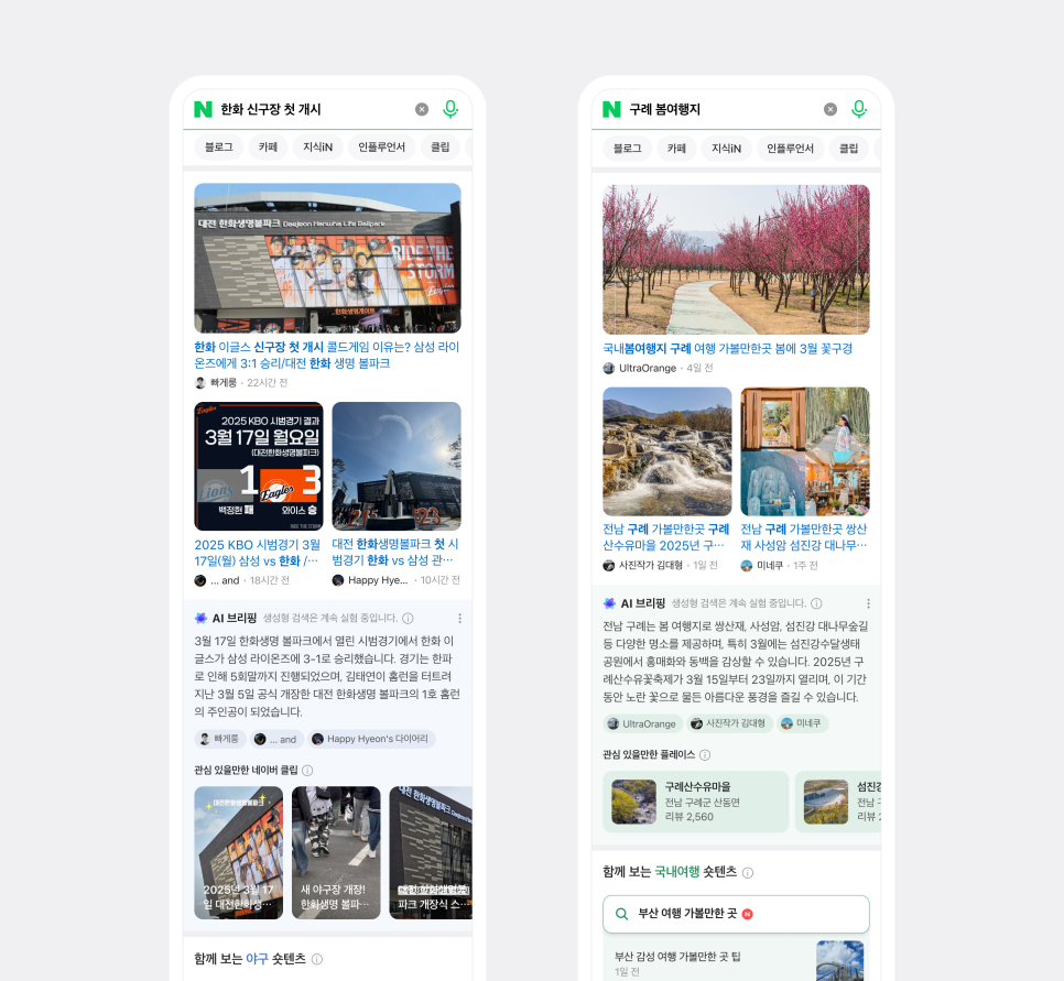 네이버가 3월 27일 생성형 AI 기술을 활용한 새로운 검색 서비스 'AI 브리핑' 을 출시할 예정입니다. 네이버 포털 검색부터 숏텐츠, 플레이스, 쇼핑에 AI 브리핑을 적용할 예정입니다.